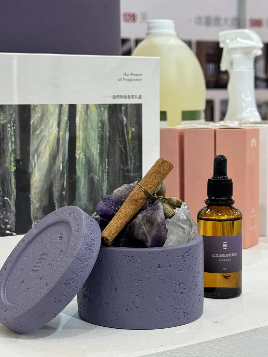 我們的經(jīng)典產(chǎn)品,如車(chē)載香氛、石膏車(chē)載香氛和藤條香氛等持續(xù)收獲好評(píng),2025年的新品則強(qiáng)勢(shì)吸睛:我們推出了酒店版的功能性噴霧,500ml大容量,不同空間的不同異味,如衛(wèi)生間異味和煙味,都有針對(duì)性的解決方案,并配有2.5L補(bǔ)充液,以高效凈化能力和沙龍級(jí)的香氣體驗(yàn)成為酒店客戶(hù)的必備產(chǎn)品;為美侖美奐酒店定制的晶石香氛,復(fù)刻了老上海和外灘的摩登風(fēng)情,而為藝龍酒店定制的晶石香氛,也是優(yōu)雅詩(shī)意的美學(xué)碰撞。